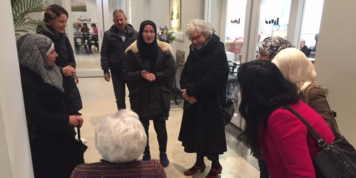 De eerste wandeling startten we wat onwennig, maar al heel snel raakte iedereen met elkaar in gesprek. Er is zoveel te zien als je wandelt en daar is dan volop met elkaar over te praten. Wat is er allemaal te koop op de markt? Wat zijn de leuke winkels en waar zou de bioscoop zijn? Er kwamen hele gesprekken op gang over vroeger en nu: zo bijzonder! Bij terugkomst werd er nog gezellig nagepraat met een drankje en wat lekkers. Onze bewoners wilden toch graag nog wel meer weten over waar iedereen vandaan kwam en hoelang men al in Nederland was.